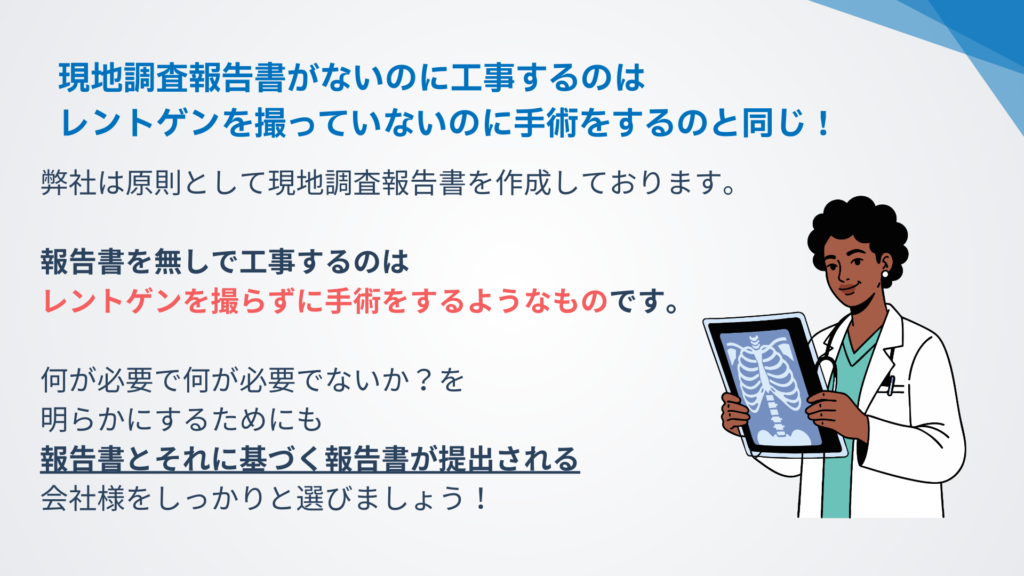 本当に必要のない工事はお客様にご提案する必要はない。弊社はそう考えているのです。