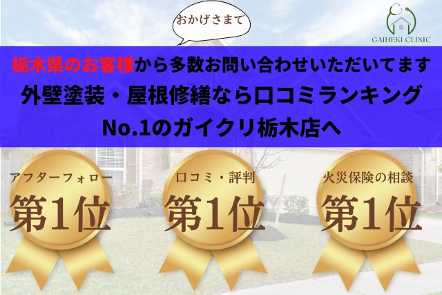 今まで施工させていただきましたお客様からの支えもあり、ガイクリ栃木店は外壁塗装の評判まとめサイトにて口コミランキング1位を獲得しました。(2026年現在)